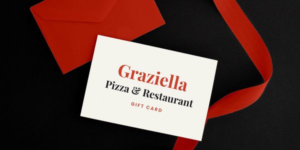 Request one in person at Graziella or call. We will happily mail or deliver the gift card to the recipient. Gift cards can be used at the pizzeria or restaurant.
